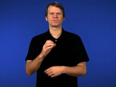 Flata handen, vänsterriktad och inåtvänd, kontakt ovanpå flata handen, högerriktad och inåtvänd, förs framåt i en uppåtgående båge // Bokstaveras: S-K-I