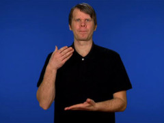 Tumvinkelhanden, nedåtriktad och vänstervänd, förs nedåt samtidigt som den förändras till A-hand, kontakt ovanpå flata handen, högerriktad och uppåtvänd