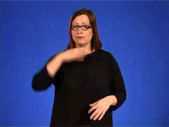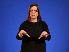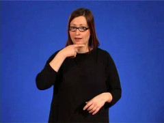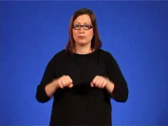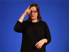 Sprethänder, framåtriktade och nedåtvända, förs inåt samtidigt som de förändras till knutna händer // Flata handen, vänsterriktad och inåtvänd, kontakt med övre delen av bröstet // Pekfingret, vänsterriktat och nedåtvänt, kontakt först med hakan sedan med pannan och slutligen med hakan