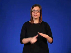 Tumhanden, framåtriktad och vänstervänd, förs uppåt och flätas mellan högerriktade och nedåtvända flata handens pekfinger och långfinger
