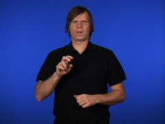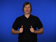 Tumhänder, riktade mot varandra och intåtvända, förs nedåt med upprepade kontakter med bröstet // Dubbelkroken, uppåtriktad och framåtvänd, slås framåt, upprepas
