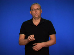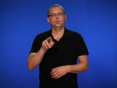 Flata händer, framåtriktade och vända mot varandra, vinkelkontakt med varandra, förs sedan nedåt och från varandra // Bokstaveras: R-O