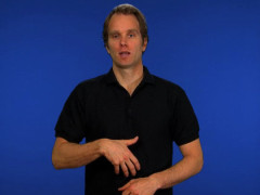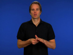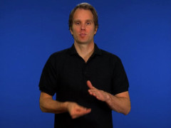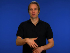 Sprethanden, nedåtriktad och inåtvänd, kontakt med magen, förs framåt // A-handen, nedåtriktad och vänstervänd, förs uppåt till kontakt under flata handen, framåtriktad och nedåtvänd