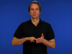 V-handen, vänsterriktad och nedåtvänd, kontakt bredvid flata handen, framåtriktad och högervänd, vrids inåt, kontakt // Böjda tupphänder, riktade mot varandra och nedåtvända, förs inåt samtidigt som de vrids inåt, kontakt med bröstet