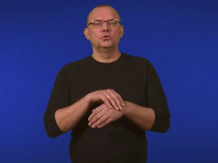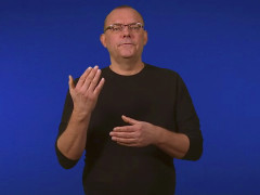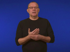 Tumvinkelhanden, framåtriktad och nedåtvänd, hakas ovanpå flata handen, högerriktad och inåtvänd // Flata handen, uppåtriktad och inåtvänd, förs åt vänster in i tumvinkelhanden, framåtriktad och högervänd
