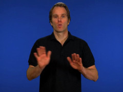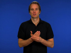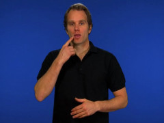 Pekfingret, uppåtriktat och inåtvänt, kontakt bredvid munnen // Sprethänder, uppåtriktade och framåtvända, förs åt vänster och höger ett par gånger // Flata handen, uppåtriktad och inåtvänd, förs åt vänster in i tumvinkelhanden, framåtriktad och högervänd