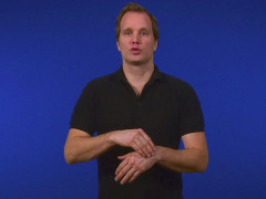 Tumvinkelhanden, framåtriktad och nedåtvänd, hakas ovanpå flata handen, högerriktad och inåtvänd // Måtthanden, framåtriktad och vänstervänd, förs inåt och uppåt under flata handen, högerriktad och nedåtvänd samtidigt som den förändras till hållhand