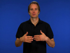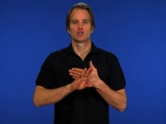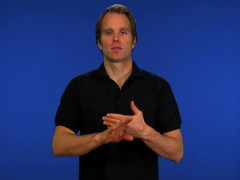 Flata handen, uppåtriktad och framåtvänd, förs framåt med bibehållen kontakt framför flata handen, högerriktad och inåtvänd // Flata händer, riktade mot varandra och inåtvända, förs fram och tillbaka växelvis med medial fingertoppskontakt med varandra