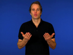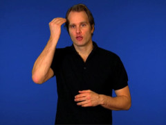 Flata händer, framåtriktade och uppåtvända, förs nedåt // A-handen, uppåtriktad och inåtvänd, förs i nedåtgående cirklar framför pannan