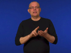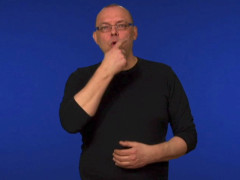 Pekfingret, uppåtriktat och inåtvänt, kontakt under högra ögat, förs åt vänster, kontakt under vänstra ögat // N-handen, framåtriktad och nedåtvänd, upprepade kontakter ovanpå flata handen, högerriktad och uppåtvänd