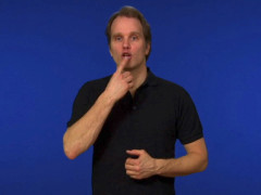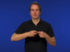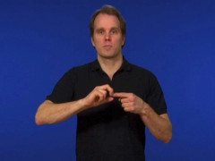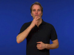 Pekfingret, uppåtriktat och inåtvänt, kontakt med munnen, förändras sedan till E-hand // V-handen, uppåtriktad och vänstervänd, slås inåt med bibehållen kontakt med hakan // Lilla O-handen, uppåtriktad och vänstervänd, kontakt med (omsluter) pekfingret, högerriktat och inåtvänt, slås framåt ett par gånger