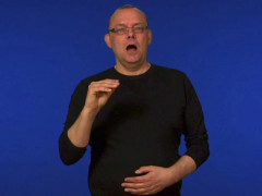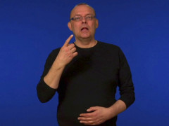 Pekfingret, uppåtriktat och inåtvänt, vrids åt vänster samtidigt som det förändras till A-hand