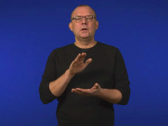 O-handen, framåtriktad och nedåtvänd, kontakt ovanpå flata handen, högerriktad och uppåtvänd, förs kort uppåt samtidigt som den förändras till flata handen, förs slutligen ner till kontakt