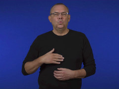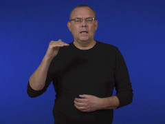 Flata handen, vänsterriktad och inåtvänd, förs nedåt med bibehållen kontakt med bröstet // Vinkelhanden, uppåtriktad och vänstervänd, förs uppåt