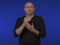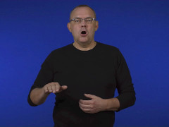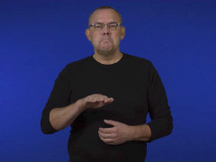 Flata handen, framåtriktad och nedåtvänd, förs åt höger med korta upprepade nedåtrörelser // Vinkelhanden, uppåtriktad och vänstervänd, förs nedåt med upprepade kontakter bakom flata handen, uppåtriktad och inåtvänd