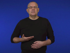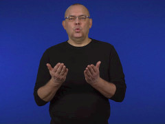 Flata handen, vänsterriktad och uppåtvänd, förs uppåt med medial kontakt med högra sidan av bröstet, upprepas // Flata händer, framåtriktade och vända mot varandra, vrids uppåt med bibehållen kontakt med varandra