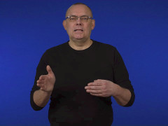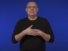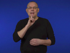 Pekfingret, uppåtriktat och vänstervänt, kontakt med munnen // Flata handen, vänsterriktad och inåtvänd, kontakt framför flata handen, högerriktad och inåtvänd, förs sedan framåt samtidigt som den slås framåt