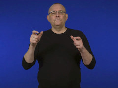 Flata handen, vänsterriktad och inåtvänd, kontakt med övre delen av bröstet // Flata handen, vänsterriktad och framåtvänd, kontakt med hakan // Pekfingret, vänsterriktat och nedåtvänt, kontakt först med pannan och sedan med hakan // Måtthänder, framåtriktade och vända mot varandra, förs mot varandra, kontakt
