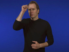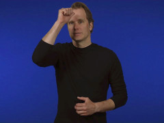 Tumhanden, uppåtriktad och vänstervänd, förs i nedåtgående cirklar framför pannan