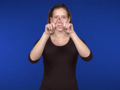 Vinkelhänder, framåtriktade och nedåtvända, slås fram resp in // Pekfingrar, framåtriktade och nedåtvända, kontakt med varandra, förs först från varandra, sedan nedåt och slutligen mot varandra, kontakt