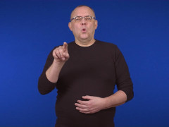 Pekfingret, framåtriktat och nedåtvänt, förs först åt höger, sedan åt vänster och nedåt och slutligen åt höger