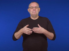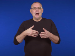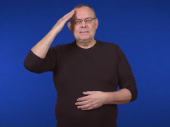 Flata händer, riktade mot varandra och inåtvända, förs fram och tillbaka växelvis med medial fingertoppskontakt med varandra // Flata handen, uppåtriktad och vänstervänd, upprepade kontakter bredvid pannan